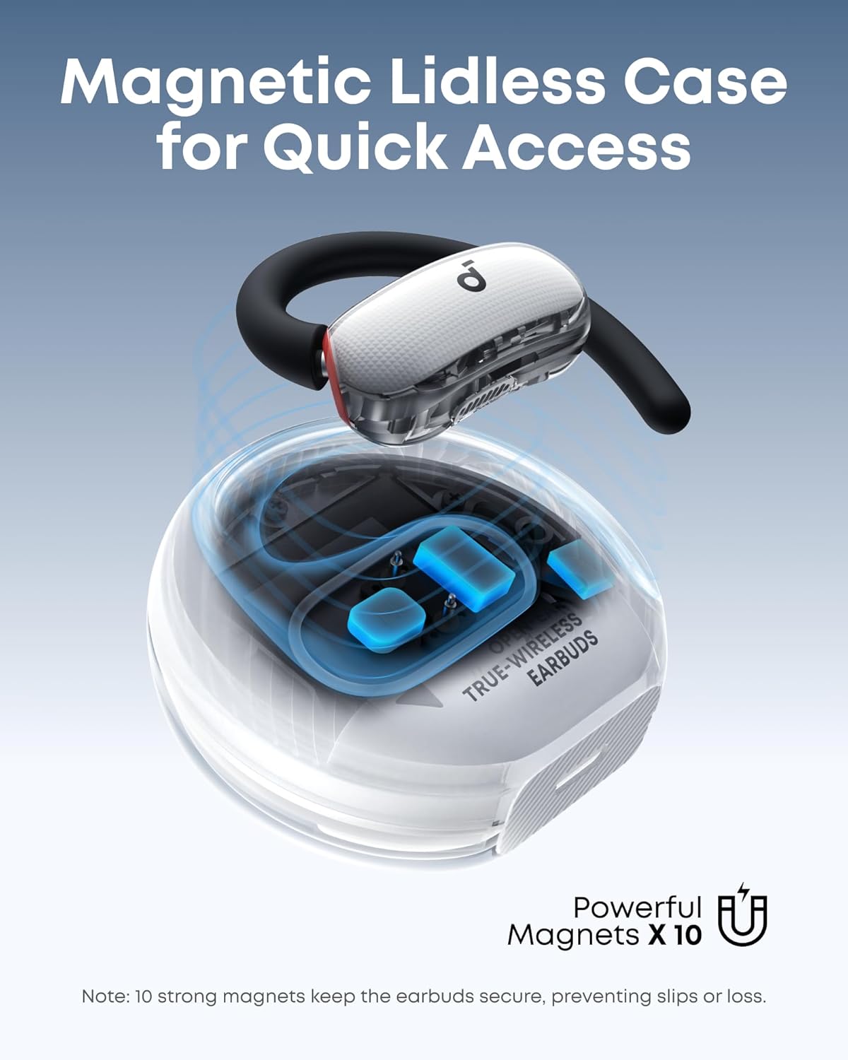 Hear Every Note: Feel the power in every beat, even in noisy environments. With 16 × 13-mm drivers, a high-elastic diaphragm, and an hourglass-shaped chamber, V40i open-ear earbuds deliver loud volume and punchy bass.
